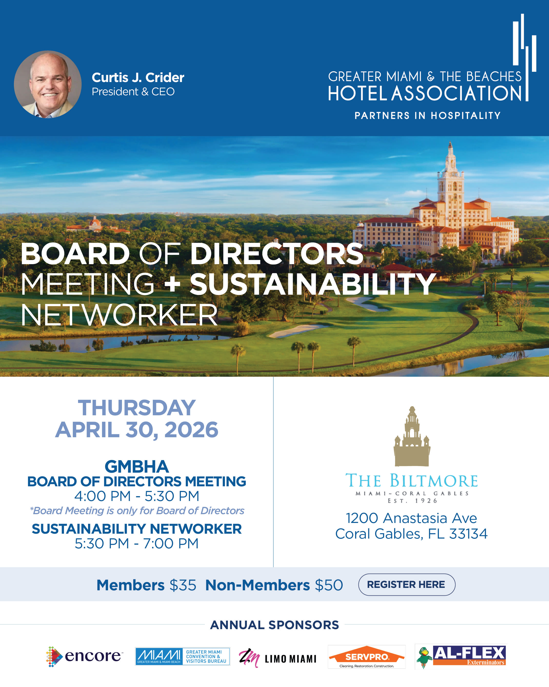 The event will begin with our Board of Directors Meeting (closed session), followed by our Sustainability Networking: “Inspired by the 305”, a gathering designed to bring together hotel leaders and local businesses committed to strengthening Miami’s hospitality ecosystem.