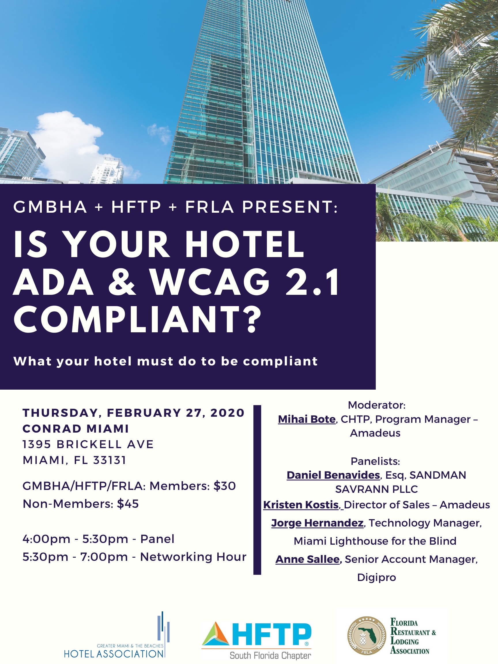 GMBHA + HFTP + FRLA Present: Is Your Hotel ADA & WCAG 2.1 Compliant? How ADA and Website accessibility regulations are impacting hotel operations and what are the steps you must take towards compliance.